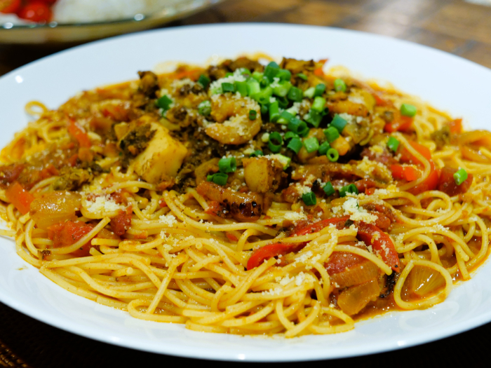 ● 海と山の賑やか!おつまみカレーパスタ